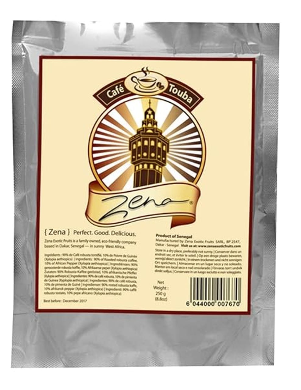 El Café Touba Halal 250g es una mezcla única de café aromatizado con granos seleccionados y especias tradicionales, muy popular en la cultura senegalesa y reconocida por su sabor intenso y característico. Elaborado siguiendo la receta original, este café combina la fuerza del mejor café africano con un toque especiado que lo hace inconfundible.